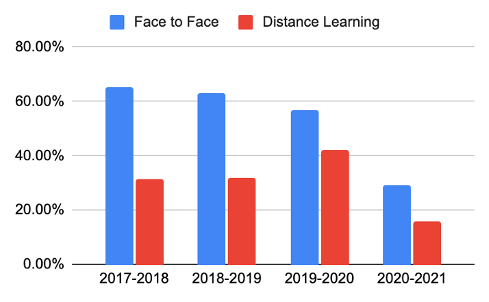 | Face to Face | Distance Learning | Combined | ||||